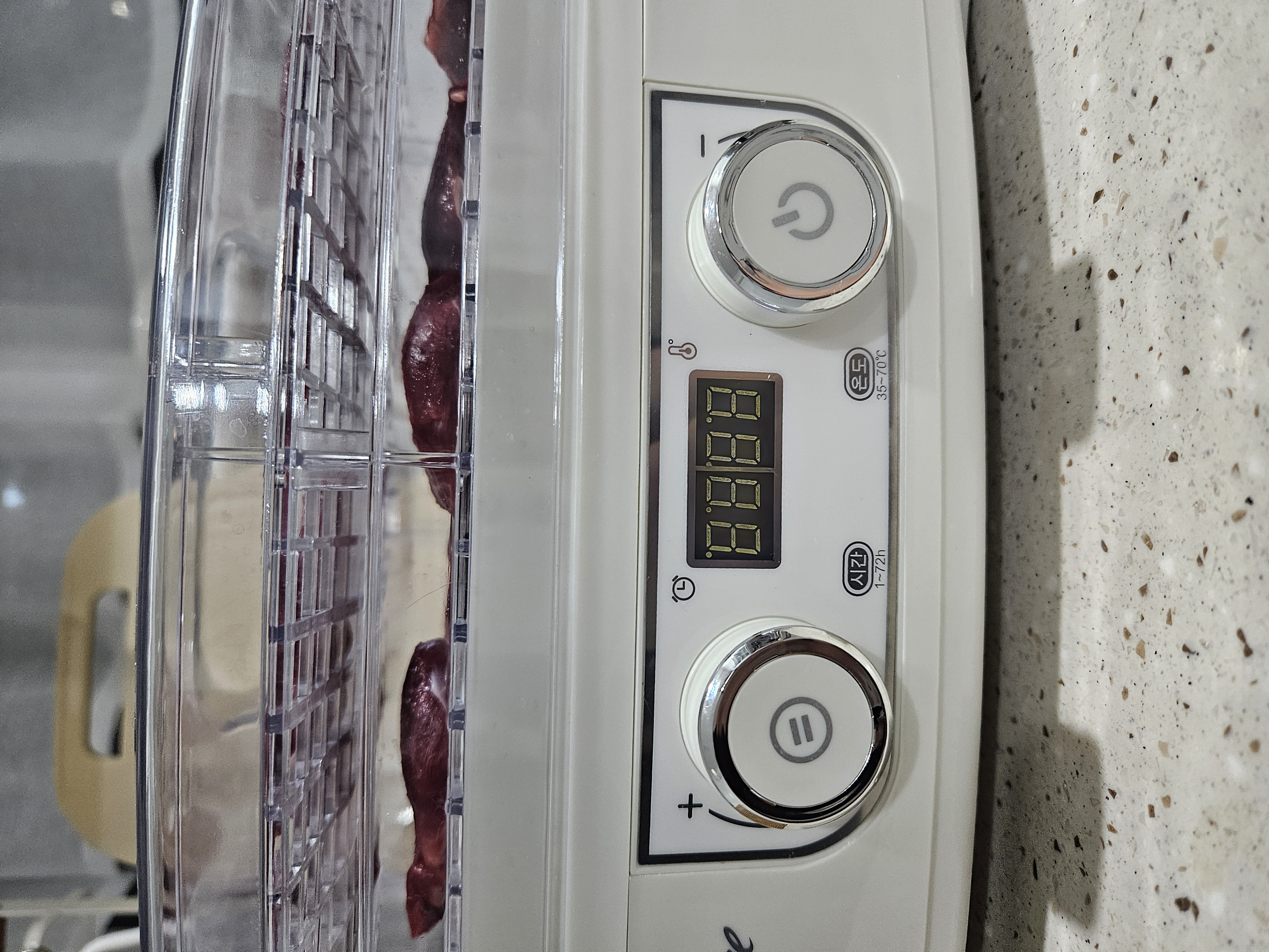 왼쪽이 시간, 오른쪽이 온도 설정인데 다이얼 식이라 뱅뱅 돌려서 맞추고 오른쪽 온도 설정 다이얼을 꾹 누르면 시작됨